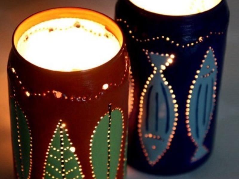 Tái chế vỏ lon bia thành đèn nến lung linh
